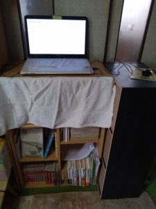 本棚の上にノートPCを置いて、隣に別の棚を置いてその上でマウス作業をする。